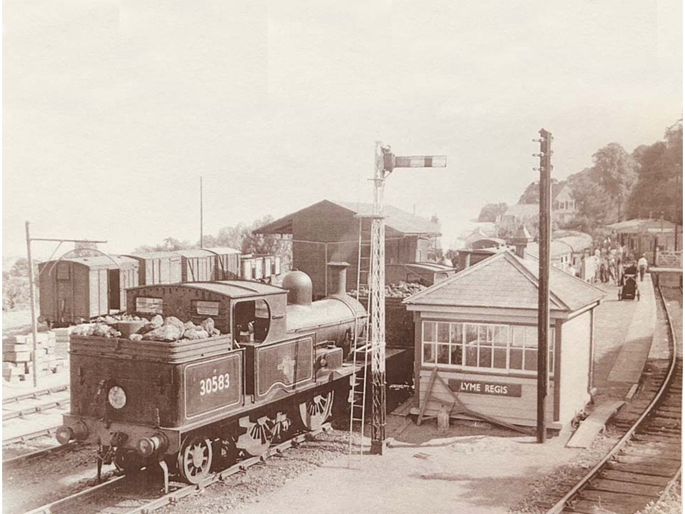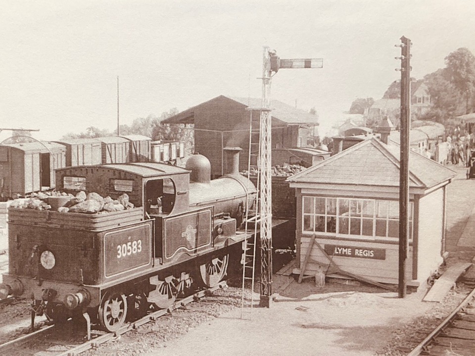 Lyme Regis railway station was a 6-mile branch line terminal that operated from 1903 to 1965, connecting the town to the main line at Axminster. Known for its steep, sharply curved route, the rural line featured a single wooden platform, a signal box. It closed in November 1965, with the original building later relocated to the Watercress Line. A photograph of Lyme Regis from the Keith Wiscombe Collection. |