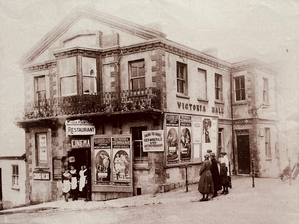 The Victoria Hall in Lyme Regis was a 19th-century assembly venue added to the town's Assembly Rooms in 1866, serving as a social hub on the Marine Parade. Often criticized as a "yellow brick" annex, it was demolished in 1928 following a 1927 storm that deemed it unsafe, with the site becoming a car park. A photograph of Lyme Regis from the Keith Wiscombe Collection |