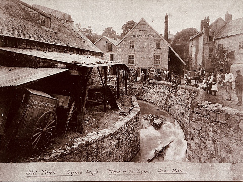 In June 1890, Lyme Regis experienced a significant flash flood caused by heavy rainfall that swelled the River Lym (also known as the Lim). This event is historically noted as one of the most dramatic and costly floods in the town's history. A photograph of Lyme Regis from the Keith Wiscombe Collection |