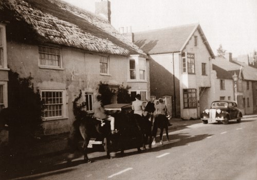 Immediately east of " Bow House" is a row of cottages, which were at one time thatched. How old they are is difficult to say and they changed hands at the turn of this century in quite a romantic fashion. They were owned by Frank Coles at that time and one day he and John Toms, the miller, drove to Axminster and on the way they discussed the cottages. Before they reached Axminster the cottages changed ownership. Frank Coles was prepared to sell them for £500. The first cottage with a covered entrance way into the land behind had good, sheds which Toms was able to use as a store for grain. A room upstairs was built over the entrance and the cottage was let to Hiss Membrey, an aunt of Fred Penny. It was later acquired by Barney Hansford and became his grocer's Stores. The other cottages were all similar in build. Joe Turner occupied one of them, when he was Tom's dairyman. The gardens extended as far as Charmouth Meadows (now the Playing Field) on the north side. |