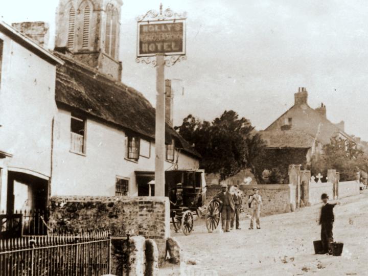 | This animated photograph shows one of the many coaches that would stop at the Coach and Horses enroute to Lyme Regis or Bridport. |