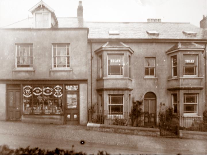 The photograph shows Robert Hazard on the left outside his shop which he ran as a general store and Ironmonger. In 1891 he suffered a disastrous fire and was only partially covered by his insurance. |