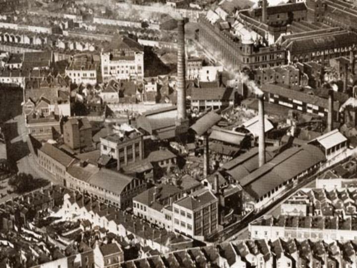 This is an aerial photograph of The Bristol works based in Bedminster operated by the Pass family. |