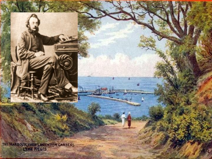 "Charmouth, with its high grounds and extensive sweeps of country, and still more its sweet, retired bay, backed by dark cliffs, where fragments of low rock among the sands make it the happiest spot for watching the flow of the tide, for sitting in unwearied contemplation". |
