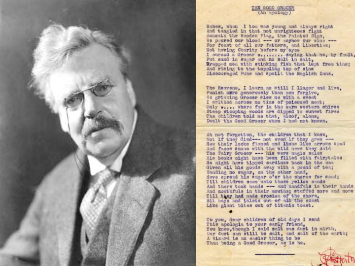 G.K Chesterton of Father Brown fame, was a frequent customer at Charmouth Stores. One of the verses he was famous for was "The Wicked Grocer", which reflected badly on the trade. But after the impeccable service he received from the Dampiers in 1929 he penned a new verse which he dedicated to William called the "Good Grocer" that is full of his praises. The signed original copy of this is still treasured by Ron and Jean Dampier. |
