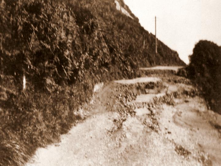 The cutting through the cliffs for gthe new road was referred to as the "Devils Bellows" as it suffered from very strong winds. |