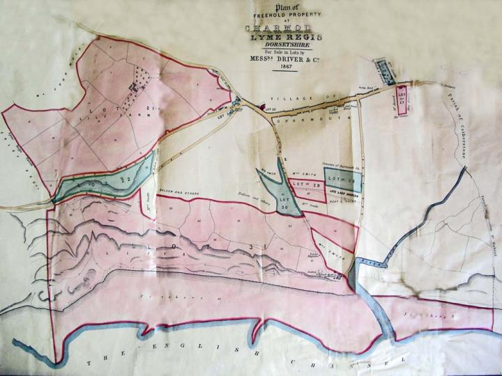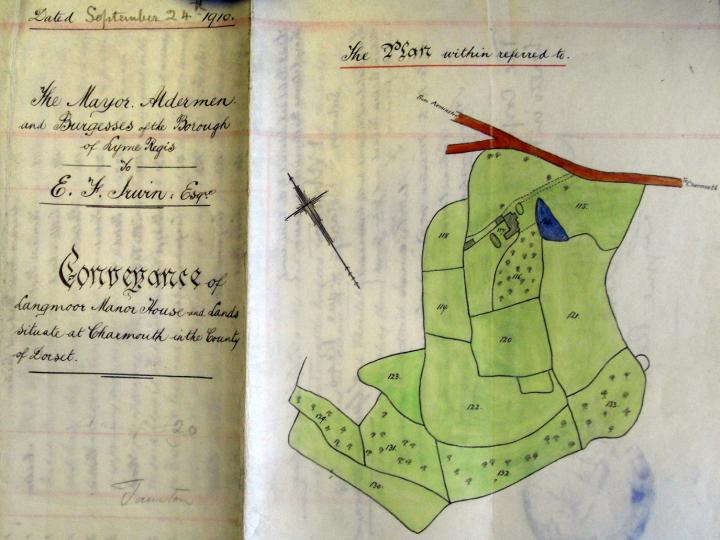 The conveyance, showing the plans of the large estate at Langmore which he gave to Lyme Regis after holding a grudge with Charmouth. |
