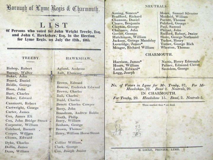 | Whilst trying to get his Railway scheme approved John put his young son,John Clarke Hawkshaw up for election and as can seen from the illustration, he only just lost by 9 votes to his opponent - John Treeby. |