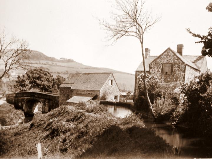 | This photograph from 1890 gives us an idea how the Mill would have looked. The buildings still exist , but considerably altered and the bridge rebuilt in 1826. |