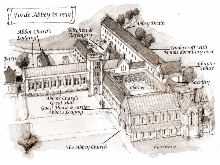 | Forde Abbey grew and prospered over the centuries from its many estates. Though its income from Charmouth accounted for less than 14% of the total. But all this was to change as King Henry VIII and his Chief Minster, Thomas Cromwell decided to close all the religious houses. The Abbott of Forde at the time was Thomas Chard who had held that position from 1521. He decided to spend their wealth on improvements to their buildings both at Forde and at Charmouth, rather than hand it over to the crown. His family name was Tybbes and his brother Raffe lived in Charmouth and appears on the Lay Subsidy Roll for 1525.
