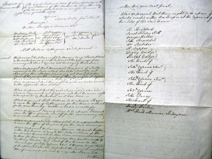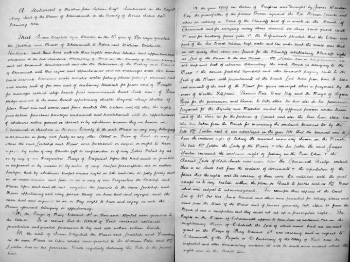 The original Charter was included in the deeds to the Manor and in 1853 it was copied out by Matthew Liddon to prove his ownership of the foreshore. It is very long and seems to apply to all the lands and buildings in the village. |