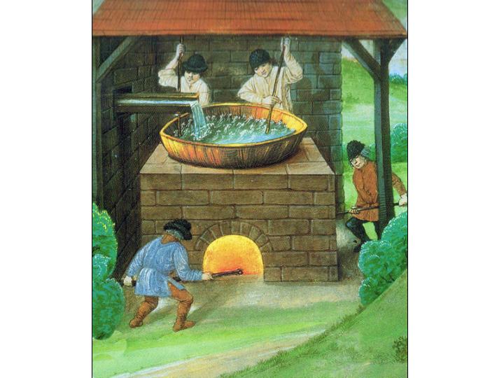 | This is an early illustration of the process, which used considerable amounts of timber. |