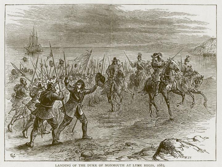 The Duke of Monmouth was the illegitimate eldest son of Charles II and his mistress Lucy Walters. He unsuccessfully attempted to depose his uncle, King James II, in what is commonly called the Monmouth Rebellion. After declaring himself the legitimate king and gaining support from the Protestants opposed to James's Roman Catholic rule, Monmouth set sail from Holland and landed in Dorset in May 1685, gathering his supporters at Lyme Regis.