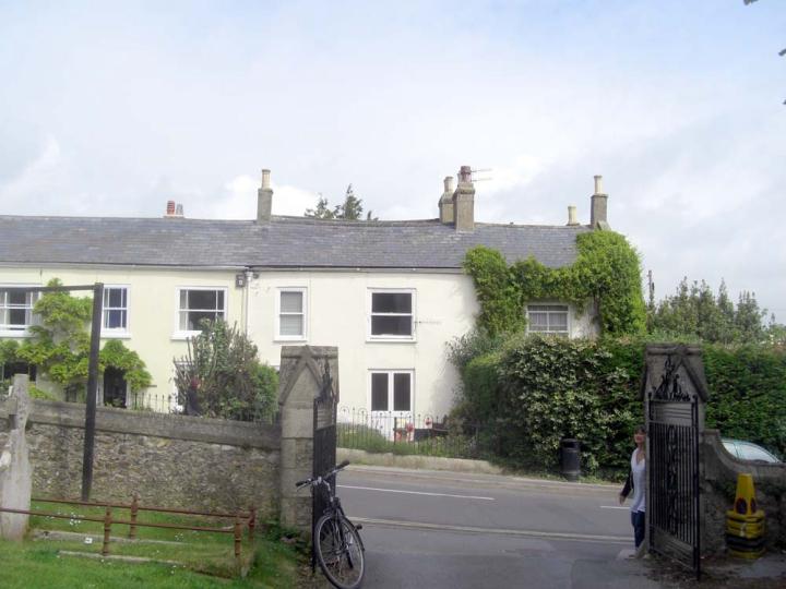 | The Coastguards cottages were built in 1867 by Richard Hodges and then leased to the Admiralty. On the left is the skittle alley from the pub that formerly stood there and whose license was transferred to a former butchers on the Street which was renamed "The Royal Oak". |