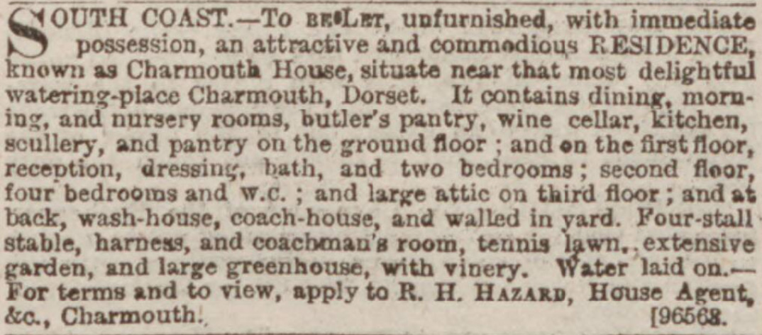 Sale of Charmouth House (Bridport News) 7 march 1873