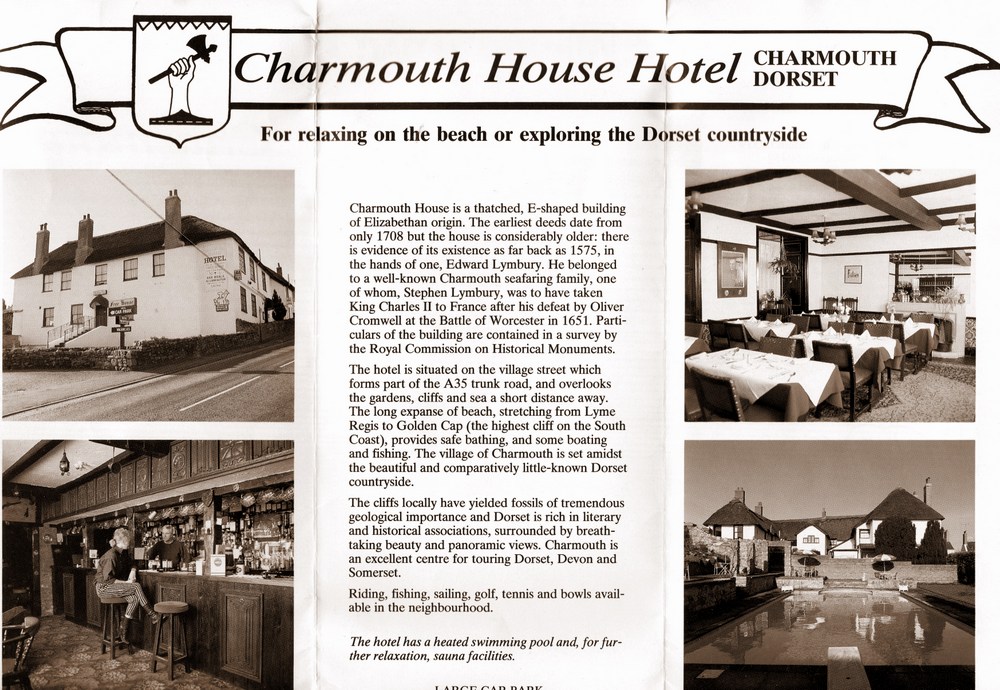 The Shoete refers to a small conduit by the road, which would have sent its water on to a stream. Even today the remains of a stream can be located in places along higher sea land leading to the sea. It was this " Shoete" which was to give the building its original name of "The Fountain" from which it was known for centuries. As with all buildings in the village, the famous local historian, Reginald Pavey was able to see the original deeds, and it is his notes that have helped with this history. He records that the earliest document refers to it being owned by Edward Limbry in 1575. This family were very important and their name appears a number of times in the detailed Rent book produced in 1539 for Sir William Petre on his purchase of the village, which is now held in Devon Record Office in Exeter. Sir William and his son John Petre are shown to give 1000 year leases to a number of properties in the village including the Elms, whose original deeds still exist. Charmouth House must have been under the ownership of the Manor for in 1764 there is a reference to "the remainder of a 1000 year lease" , when the property is sold. There is also a deed relating to an adjoining property that was let by Edward Limbry from Sir John Petre. Almost all the lands south of the Street remained with the Lords of the Manor for centuries. But the deeds show that as well as the 3 ½ acres adjoining Charmouth House it possessed over 60 acres of lands between Higher Sea Lane and Old Lyme Road which were eventually sold off in the 18 th century. The Hearth Tax returns for 1663 show the ownership of all the dwellings in the village that had fireplaces. It reveals the largest being the Manor House (6) where William Ellesden resided, but after him was William Lymbry (4) who would have owned Charmouth House. It was his relation Stephen Lymbry with just 1 hearth who was to make his name in history by attempting to sail the future King Charles II across to France in 1651, but was prevented carrying it out by his wife who locked him in a cupboard after finding out about the plan. The Lymbrys were the leading family in Charmouth during the 17 th century and there are many mentions of the family in lawsuits, wills and title deeds of the times.
