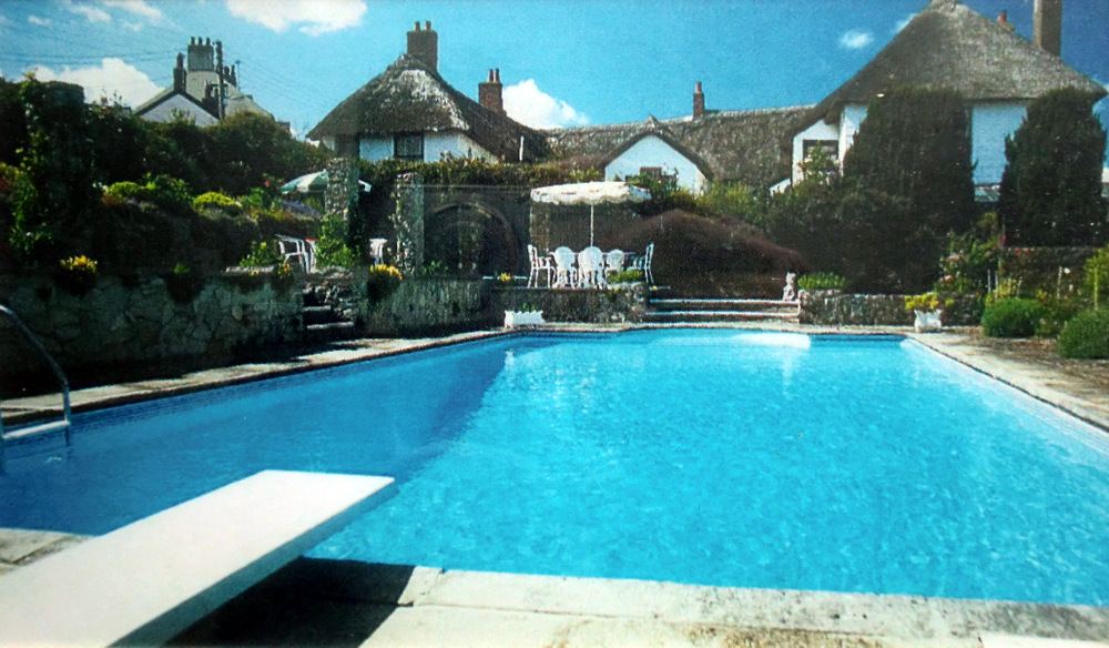 The Hotel's former Swimming Pool is now back to gardens and at the rear of this another property was built and more recently a further house was constructed in part of that garden. How times have changed when the ancient Fountain Inn was stood in over 4 acres of its own grounds. But we are fortunate today that the building we see is little changed from those great days in the history of the village when Charmouth was the focus for coaches travelling across country from London to Exeter. |