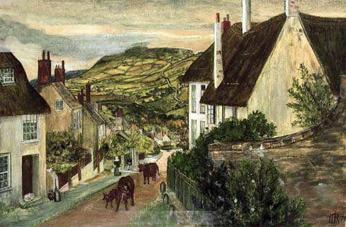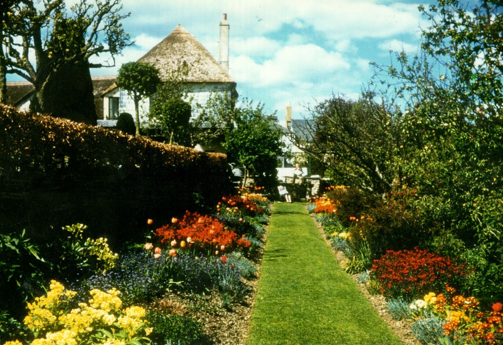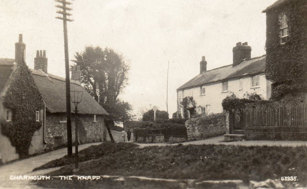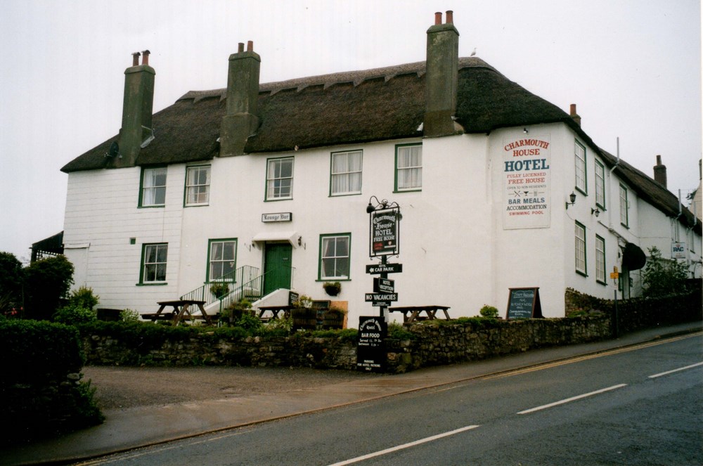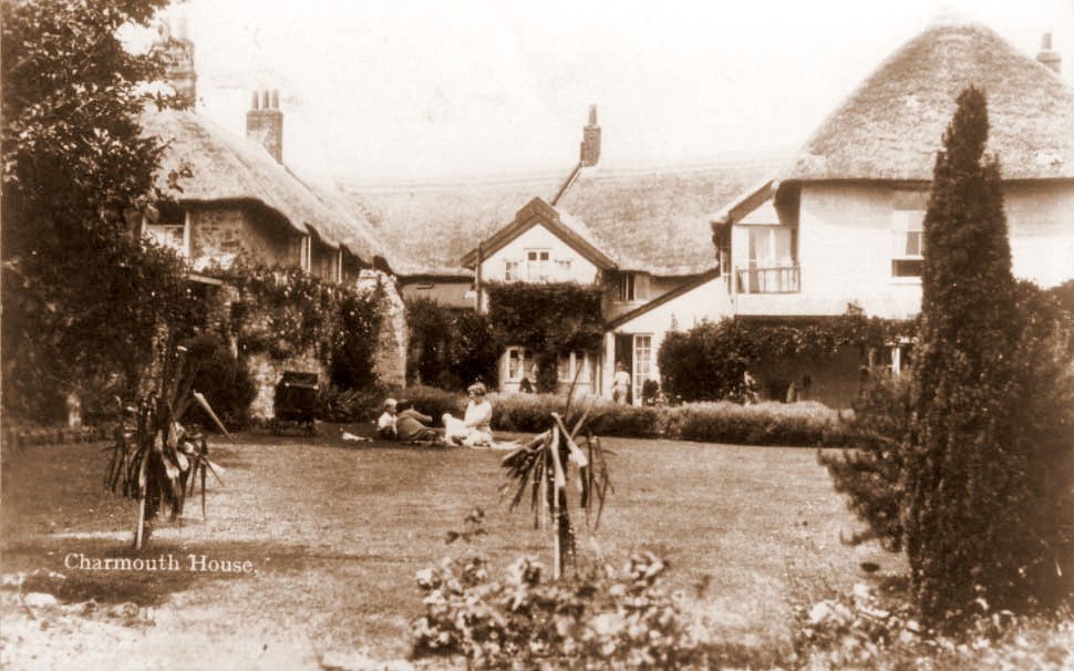 Charmouth House presents itself as a large imposing thatched building on the corner of the Street and Higher Sea Lane. As with many of the larger properties it possesses a long and interesting history stretching back to the years when the village was under the ownership of the Monks of Forde Abbey. The existing building is thought to have consisted of two houses and stabling. A description of the construction of which can be read in Peter Press's excellent article in The Village Echo for the Summer 2005 when he was able to see the inside whilst it was being converted from a Hotel into four dwellings. It revealed the building to be over 500 years with a magnificent moulded beam Ceiling and Fireplace in the former Reception area and a Plank and Munting Wall in the Scott's part. This screen is composed of large vertical timbers with planks in between and is dated to c.1500. It would confirm the belief that Charmouth prior to the dissolution of 1539 under the auspices of Abbott Thomas Charde was prospering with The Manor, The Queens Armes (Abbots House) and the Church containing fine features from this time. An earlier Abbot, simply known as William had created a borough in the manor of Charmouth between 1290 and 1297. A detailed description of the boundaries can still be seen in the ancient Cartulary kept at Forde Abbey."thence along the road ascending to le pillory and then to the cross which stands on the road to Lyme above Radehorne, on the west side of the vill as far as le Shoete by the corner along the ditch to the bank adjoining Sevenaker on the north side.