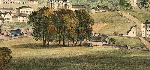 | Mrs Elizabeth Tackle`s view showing the Hospital behind the group of trees in 1850 |