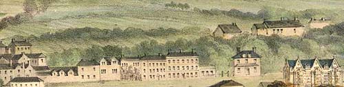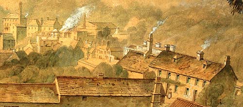 Woolley Street showing Lychetts and the Brewery Buildings in 1850